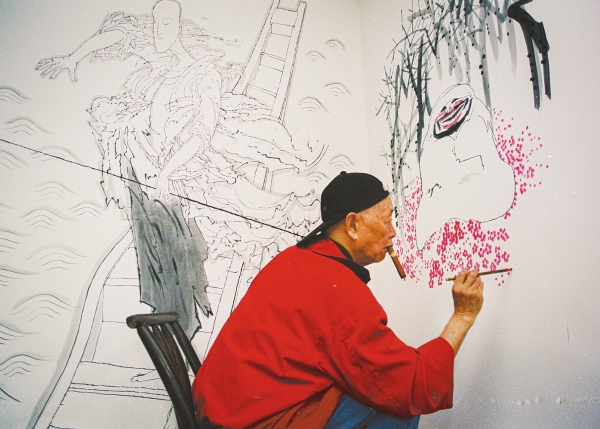 2001年4月,先生又回凤凰办画展。其间,再访准提庵。看过正殿,住持释如缘陪同他前往后殿。连廊的墙壁上,挂有若干幅佛教题材的水墨画。先生看过,问是何人所画。住持介绍,是本县一个姓舒的年轻人画的。住持说,很多人问这里有没有你的画,我说你的画是无价之宝。先生听了不作声。来到膳堂,大厅堆满桌子板凳和一些杂物。先生环视周围墙面,对住持说:你抓紧安排人把膳堂清理干净,我在凤凰还有几天,就在这墙壁上给你们画几幅画。释如缘喜出望外,赶紧率众尼把膳堂收拾停当。