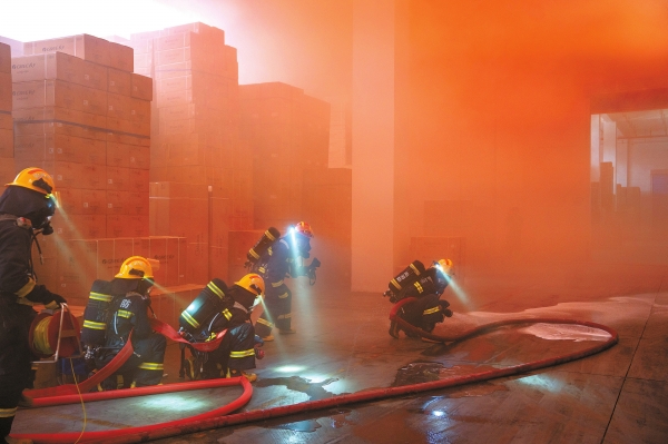 6月10日,消防救援人员在进行灭火救援演练。当天,长沙市2025年仓储物流消防应急救援演练活动在湖南苏宁物流有限公司举行。本次演练模拟该公司3号仓库因外来人员吸烟引发火灾,火势迅速蔓延。长沙市望城区消防救援大队迅速启动应急响应,开展实战化消防应急救援演练,全面锤炼消防救援人员的应急处置与协同救援能力。