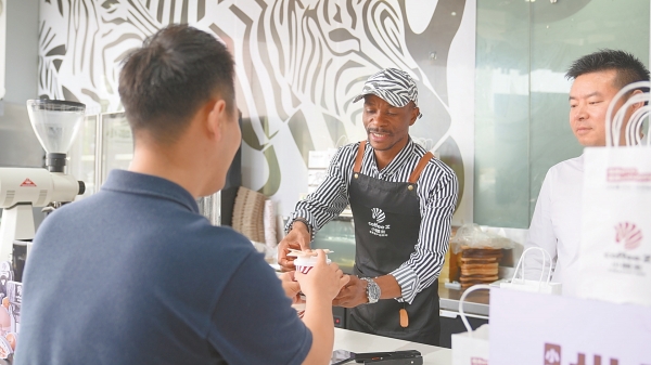 “看到店里有位非洲小伙,消费者很惊喜,纷纷与他合影,互动特别亲切。”景建华说,这代表了消费者对非洲文化和非洲咖啡的认可。