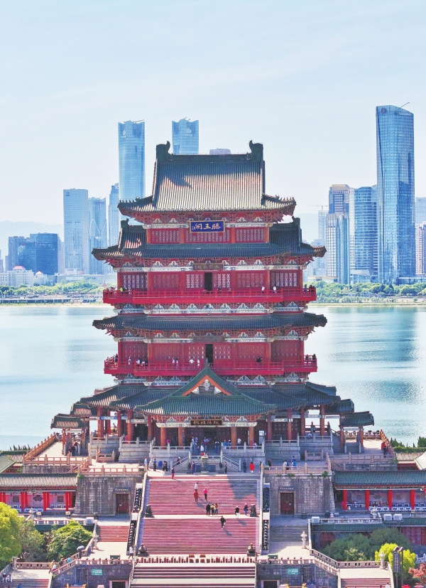我们结束采访离开滕王阁时,赣江两岸已华灯初上。想到江峰青写下楹联时的一腔孤愤,王勃《滕王阁序》中藏在华丽辞藻里的苦楚,班超老来想归乡却困在西域的无奈,还有终军壮志未酬客死异乡的遗憾,我瞬间体会到,历史或是一场深刻的共情:人生如朝露,即便天纵奇才,又有谁能一生顺遂呢?