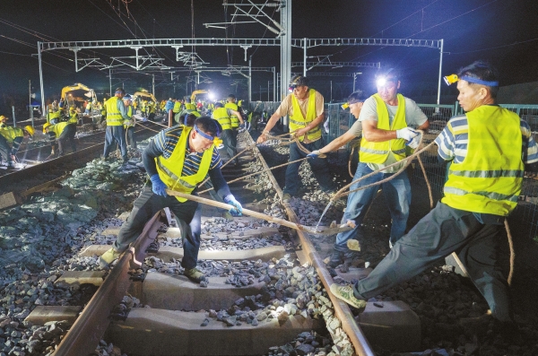 6月15日晚,由中铁二十五局集团承建的长沙高铁西站施工现场热火朝天,600余名工人利用列车非运行时段奋战完成K20+740~K22+400段南侧过渡转线施工。本次转线段全长2300米,其中预铺段长度1800米,采用双线东、西头同时拨接引入新铺线路工艺。