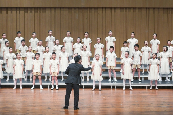 6月22日,小学生在进行合唱表演。当晚,第二季“放声歌唱”公益童声合唱音乐会在长沙音乐厅举行,500多名孩子化身“音乐使者”,用纯净童声编织出一场充满爱与希望的视听盛宴。