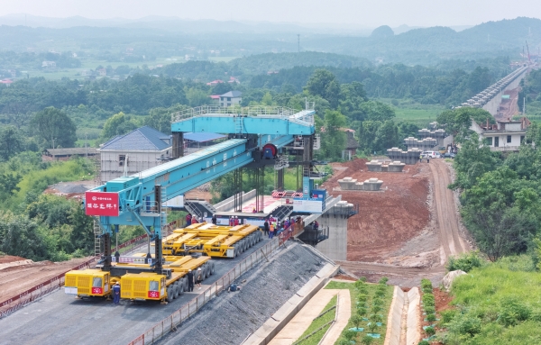 湖南日报6月25日讯(全媒体记者 于淼 通讯员 刘凯 董剑锋)记者从广铁集团获悉,6月25日,随着GTJQ900型架桥机将一孔长24米的箱梁稳稳架设在柘刺坪特大桥桥台上,邵永铁路实现全线首榀箱梁成功架设,正式拉开箱梁架设施工帷幕,标志着工程建设取得重大阶段性成果。