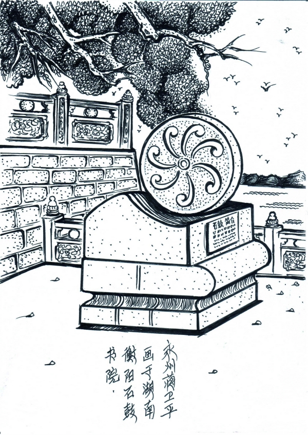 衡阳石鼓书院有三绝,一是翻不动的书,二是认不得的字,三是敲不响的鼓。如果周末不忙,不如来趟衡阳,也许在这能看到不一样的风景,您不想来试试吗?此画由永州人蒋卫平敬绘。