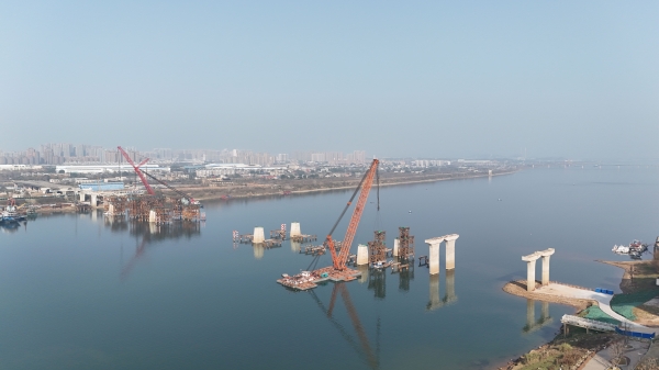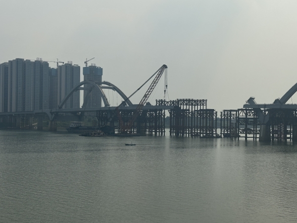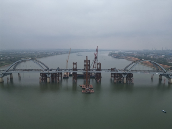 下摄司大桥横跨湘江航道,通航船舶众多,确保通航安全成为一大难题。“为了解决这个难题,我们想了很多办法。”建设单位湘潭城发·城建集团负责人杨向阳介绍,在大桥建设过程中,先利用临时支架搭建桥梁的边跨和次边跨,确保船舶能从主跨顺利通行;架设主跨时,让船舶从次边跨通过,安全顺利实现航道转换。