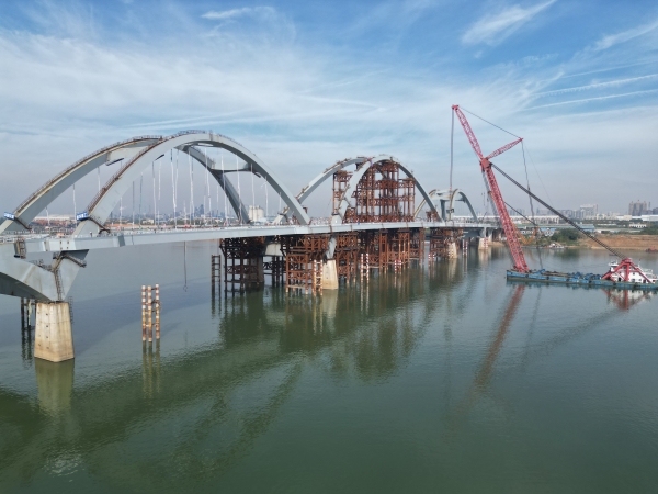“5毫米,这是我们对这座桥的承诺。”下摄司大桥项目负责人、党员先锋队队员侯湘亚指着钢箱梁吊装现场说。项目团队采用“分段预制+整体拼装”工艺,借助两台不同型号浮吊进行双机抬吊作业,2024年10月拱肋合龙施工时,上下游拱肋端头对接误差仅为2毫米,创下国内同类型桥梁施工新纪录。