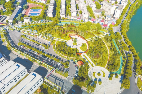 7月3日,俯瞰娄底市涟钢钢城文化广场。当地将昔日废旧厂房打造成钢铁文化主题广场,满足休闲、健身、宣教等需求。