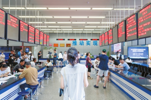 7月4日,求职者在了解岗位信息。当天,2025年百日千万招聘专项行动——综合性人才专场招聘会在长沙市人力资源市场举行,共有22家企业参加,提供岗位605个。
