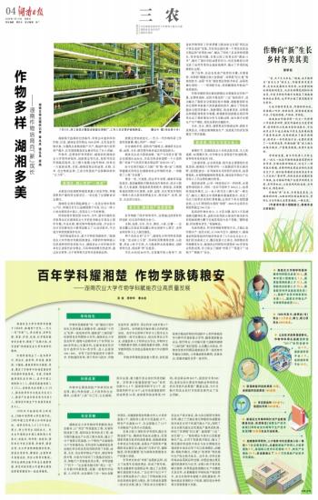 先进的理念、科学的种植和管培方式,才能让农作物丰产、农民丰收。从1926年至今,湖南农大、湖南省农科院等院所作物学科培养了2万余名专业人才,他们犹如星星之火,撒在祖国大江南北,持续推动农作物繁育生长。湖南农业科研院所获得的100多项农业科技成果,有力保证了湖南“米袋子”“菜篮子”“油瓶子”“棉被子”安全。