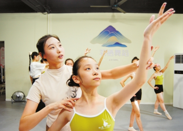 7月17日,嘉禾县某舞蹈培训中心,孩子们在老师的指导下学习舞蹈。暑假期间,当地许多中小学生参加兴趣班,增长才艺,丰富暑期生活。