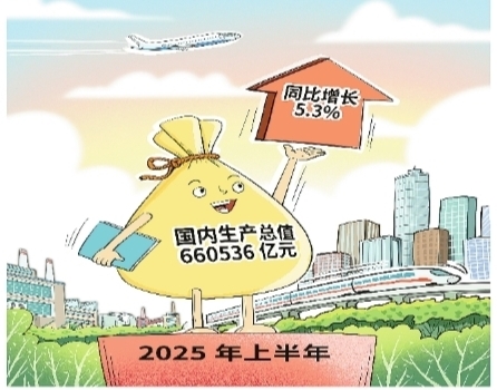 国家统计局数据显示,2025年上半年,我国国内生产总值超66万亿元,同比增长5.3%。中国经济在“稳”的基础上继续向着高质量发展迈进,展现出强大抗压能力和发展韧性。