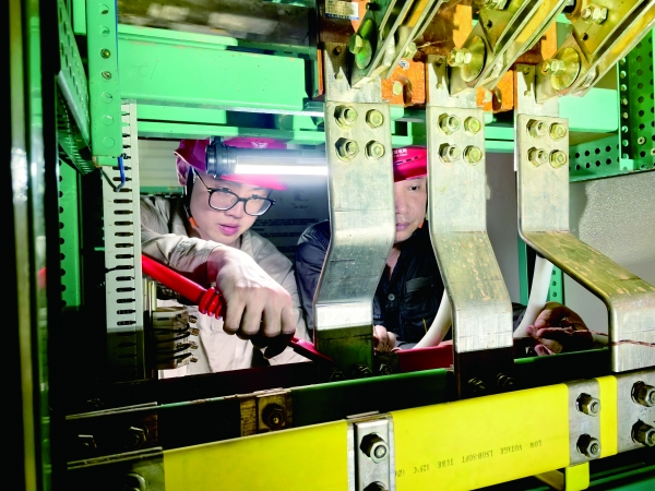 国网湖南电科院“电博士”团队在配电间开展低压开关柜送电前绝缘测试。 |