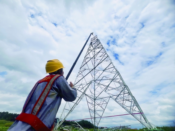湖南省送变电工程有限公司员工在艳山红-宗元Ⅱ回邵阳西变500千伏线路工程进行组塔作业。 舒涛 摄 |