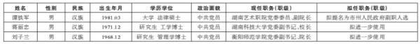 为了加强对干部选拔工作的监督,提高识别和任用干部的准确程度,现对省委常委会会议研究决定的下列拟任人选进行任前公示: