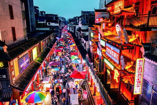 夜幕低垂,华灯初上,耒阳的“夜经济”引擎也随之轰鸣启动。承载着几代人乡愁记忆的历史文化地标南正街,经精心雕琢后焕发新生。古朴雅致的青砖黛瓦与流光溢彩的时尚霓虹在此交相辉映,升腾起浓郁的人间烟火气与都市新活力。这条古街的复兴,让濒临失传的传统手艺重焕生机,地道美食、创意文创、精彩演艺汇聚一堂,点亮城市夜空,释放消费潜能。