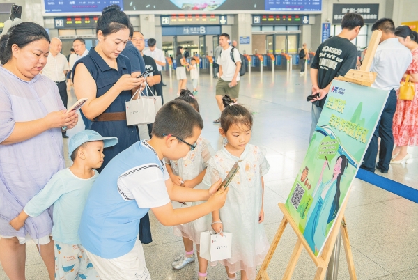 7月28日,旅客通过手机扫描“城际有诗小程序”二维码参与活动。当天,长株潭城际铁路文旅融合项目启动仪式在城际铁路长沙站举行。该项目将打造“城际有剧”“城际有歌”“城际有味”“城际有戏”等系列活动,让长株潭城际铁路成为串联湖湘文化与大众生活的“流动纽带”。