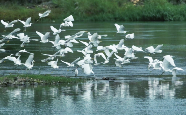 目前,天子湖的生态环境已恢复如初,生物多样性显著提升,记录到的维管束植物523种,脊椎动物190种,其中包括鸳鸯、东方角鸮等8种国家二级保护动物。如今的天子湖,碧波荡漾,鱼虾重现,候鸟翩跹。