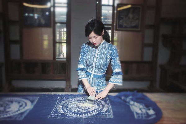 2013年,外出闯荡多年的杨彩虹,带着女儿罗沙沙,毅然回乡创立湖南蓝印文化发展股份有限公司,并拜国家级非遗代表性传承人蒋良寿为师,复活蓝印花布传统技艺。罗沙沙发挥大学所学专长,在学习传统技艺的基础上,大胆创新,设计出特色旗袍、礼服、枕套、遮阳伞等10多个系列的文创产品,广受消费者喜爱。