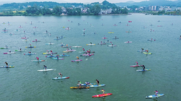 自2022年成功举办中国桨板黄金联赛以来,邵阳县已连续举办三届国家级水上运动赛事。每届赛事,都有来自全国各地近千名水上运动员,在天子湖上演“速度与激情”。如今的天子湖成为桨板运动的热门“打卡地”,吸引众多桨板运动爱好者和游客前往。