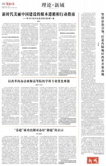 《中共中央关于进一步全面深化改革 推进中国式现代化的决定》将“坚持全面依法治国”确立为进一步全面深化改革的重大原则之一,强调要“在法治轨道上深化改革、推进中国式现代化”。湖南持续用力打造内陆地区改革开放高地,应充分发挥法治对改革开放高地建设的引领作用,在法治轨道上推进深层次改革、扩大高水平开放,奋力谱写中国式现代化湖南篇章。