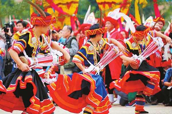 早闻瑶族长鼓舞是第二批国家级非物质文化遗产代表性项目,既是国宝级文化遗产,也是瑶族群众最喜爱的文化艺术形式。瑶族长鼓舞源远流长,据说起源于祭奠盘王的礼乐。《搜神记》说:“……扣槽而号,以祭盘瓠,其俗至今。”瑶族经典《过山榜》载:“长腰木鼓……儿孙连手抱臂,呵呵跳唱,作乐三天三夜,惊天动地。”隋唐时,瑶族先民几乎生活在湖南全境。盛唐之末,杜甫游洞庭泛湘江,有诗写照:“渔父天寒网罟冻,莫徭射雁鸣桑弓。”北宋神宗熙宁年间开梅山后,一位叫吴居厚的官吏到梅山推行新法,以诗记录了当时梅山瑶民生活习俗:“迎神爱击穿堂鼓,饮食争持吊酒藤。莫道山中无礼乐,百年风俗自相承。”诗中的“穿堂鼓”便是瑶族长鼓。