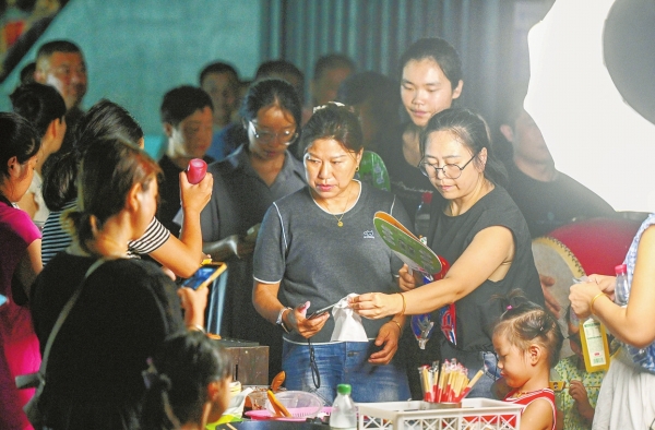 8月6日晚,桃源县茶庵铺镇篮球公园,村民在赛场外购买当地美食。 |