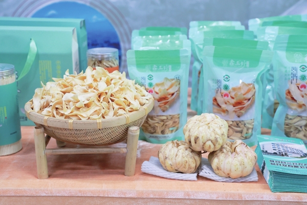 步入隆回道地药材产业园展区,金银花的清新与百合的芬芳扑面而来,交织成生动的产业画卷。展台上,金银花牙膏、益生菌、沐浴露等深加工产品琳琅满目;一旁的龙牙百合面、百合粥等特色食品香气四溢,吸引游客纷纷驻足,询问制作工艺与养生功效。