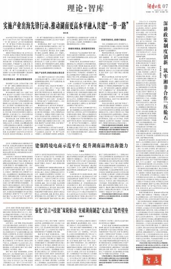 实施产业出海先锋行动,推动湖南更高水平融入共建“一带一路”