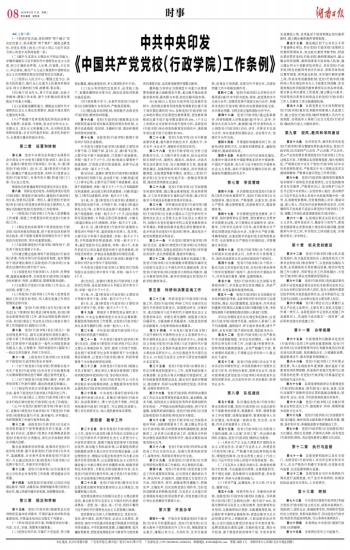 中共中央印发《中国共产党党校(行政学院)工作条例》