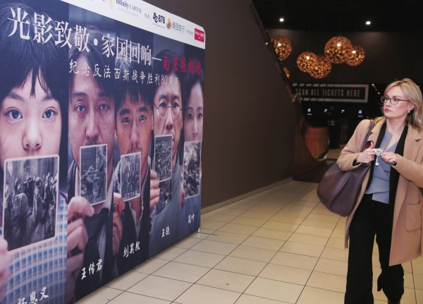 8月8日,一名观众观看澳大利亚悉尼一电影院内放置的《南京照相馆》海报。当地时间8月7日,电影《南京照相馆》在澳大利亚上映。