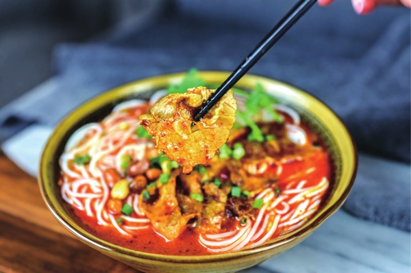 青树坪米粉是湖南省双峰县青树坪镇的传统名吃,以“鲜、香、辣、韧”著称。其特色鲜明:选用本地一级中籼米为原料,经浸泡、磨浆、蒸制等七道传统工序制成干粉,质地柔韧弹牙,久煮不糊,干炒不断,与常见的湿粉形成鲜明对比。汤底则以筒子骨、母鸡慢火熬制,配以辣椒、老姜等香料,淋上现炒的红油肉臊,形成醇厚香辣的秘制红汤,佐以花生米等配菜,口感层次丰富,辣而不呛。作为当地人早餐的首选,青树坪米粉承载着浓厚的乡土情结,更是游子乡愁的寄托。近年来,通过创新气调包装技术,开发方便速食产品,并借助电商推广,其影响力已从地方扩展至全国,成为乡村振兴的亮眼名片。