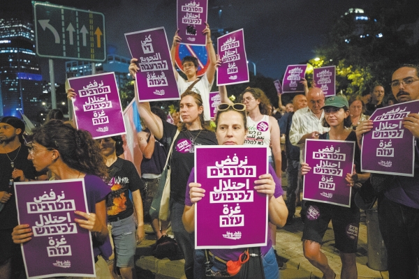 17日晚,在特拉维夫市中心以色列国防部大楼周边街区,示威人潮涌动,空气闷热得令人窒息。