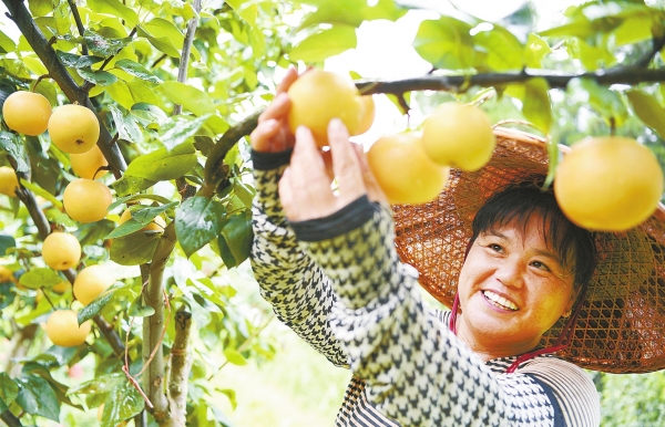 8月19日,城步苗族自治县兰蓉乡水源村,村民在采摘秋月梨。8月中旬以来,该乡种植的400多亩秋月梨逐渐成熟,村民加紧采收、分级、打包,通过“线上+线下”方式售往各地市场。近年来,兰蓉乡积极优化农业产业结构,采取引种、嫁接等方式,不断改良原有的苗香梨品种,规模化、专业化发展秋月梨产业,有效拓宽了群众增收渠道。