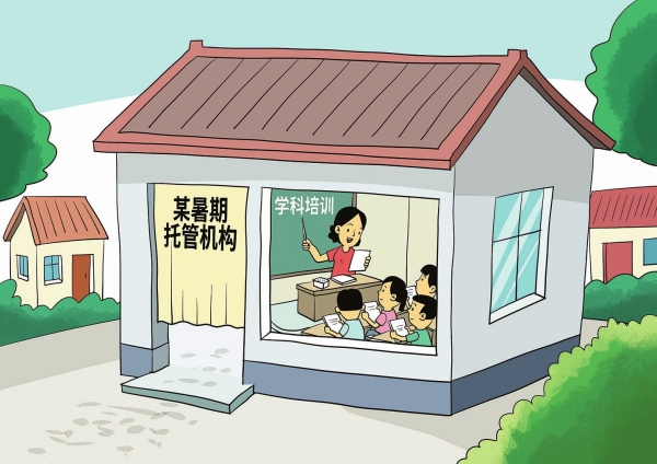 据记者调查,天津一所新建学校旁边的村庄开了十几家托管机构。这些看似提供基础托管服务的场所,实则是隐形学科培训的“重灾区”。非寒暑假期间,它们以辅导作业为主;一到暑假,“主业”就悄然转变为学科培训。