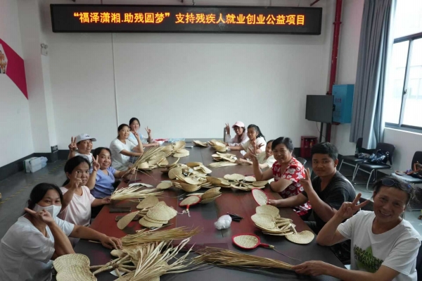 小徐的故事,是“福泽潇湘·助残圆梦”公益项目助力残疾人就业、创业的一个生动缩影。在“美丽工坊”内,像小徐这样的残疾手工艺人还有很多。他们围坐在一起,热烈地交流着手中工艺品的制作技巧,脸上洋溢着自信与满足。拄着拐杖上班的旷水菊,尽管行动不便,但眼神坚定而专注,手指灵活地在材料间穿梭,精心雕琢着每一个细节。患有先天性唇腭裂的年轻女孩小田,则虚心地向老员工们请教编织方法。在这里,她们不仅获得了就业机会,更找到了人生方向,重拾了对未来的信心。