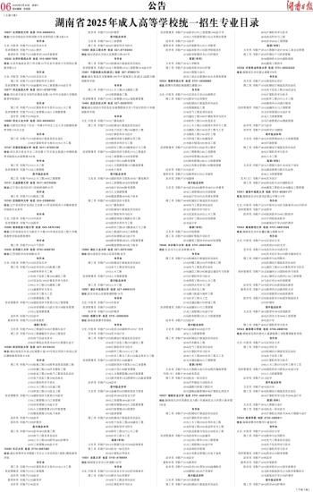 湖南省2025年成人高等学校统一招生专业目录