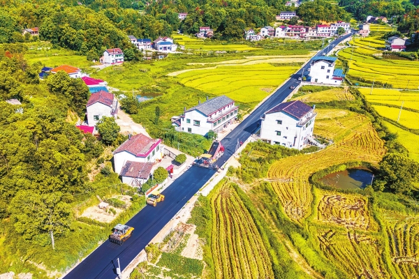 8月24日,S222线双峰县井字镇松柏村沥青摊铺作业现场,工人正在施工。S222线作为省级干线公路,北起湘乡,南接衡阳,是区域交通重要纽带。目前各分段建设全面推进,建成后将极大改善沿线交通,促进城乡经济发展。