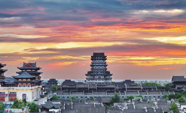 8月28日傍晚,长沙市望城区铜官街道上空夕阳穿透云层,将整片天地染成金黄色的瑰丽画卷,蔚为壮观。