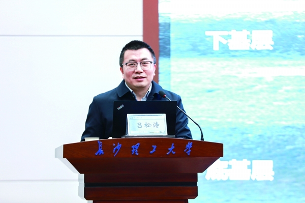 吕松涛,男,汉族,1979年11月生,中共党员,长沙理工大学交通学院副院长,二级教授,博士生导师。他坚守科教一线十七载,心怀“国之大者”,致力于攻克极端环境下长寿命道路工程关键技术,其研究成果有效破解了青藏高原等高寒地区道路寿命短、维护难的世界性难题,成果并推广应用于京港澳高速等重点工程,获国家科技进步二等奖、中国公路学会科学技术特等奖等重大奖励。他坚持“科研带教学、项目育英才”,长期担任班主任和科创导师,带领学生深入高原一线,将国家重大需求转化为生动课堂,指导学生多次获“挑战杯”“金种子杯”等省级以上创业大赛金奖。曾获国家杰出青年科学基金获得者、长江学者奖励计划青年学者、交通运输部中青年科技创新领军人才、茅以升卓越道路工程师等荣誉称号。