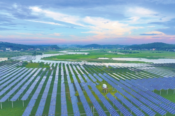 8月28日,衡东县大浦镇,夕阳下的光伏电站。近年来,该县大力发展新能源产业,多个风力发电和光伏发电项目相继投入运行,进一步推动生态效益与经济效益双赢。
