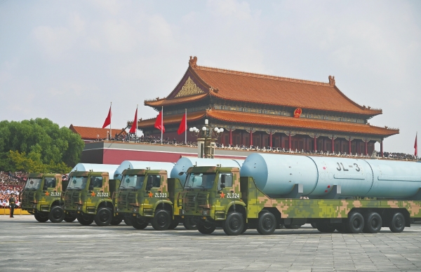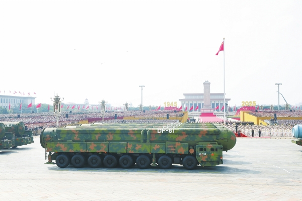 受阅的“惊雷-1”空基远程导弹、“巨浪-3”潜射洲际导弹、“东风-61”陆基洲际导弹、“东风-31”新型陆基洲际导弹,首次集中展示我军陆、海、空基“三位一体”战略核力量,是维护国家主权、捍卫民族尊严的战略“王牌”。