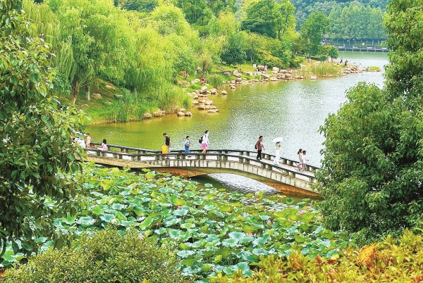 9月7日,天气渐凉,不少长沙市民来到尖山湖公园休闲,赏绚烂秋色,享安宁生活。