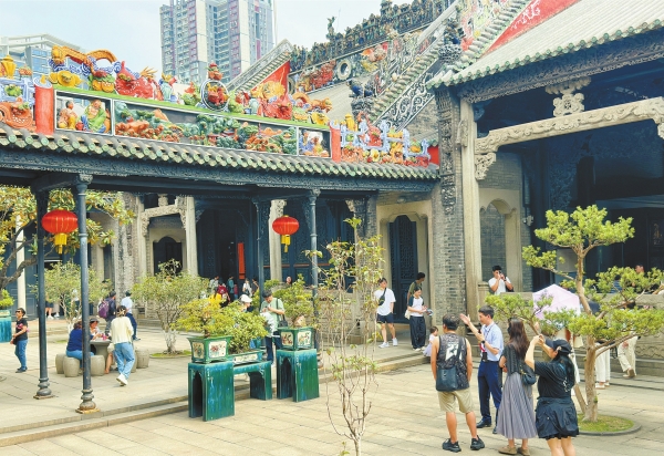 采访当天正值周末,一群孩童在陈家祠体验广彩绘制,稚嫩的欢呼声惊起了檐上歇脚的雀鸟,一片生机中,传统的血脉已在新的肌体里搏动。