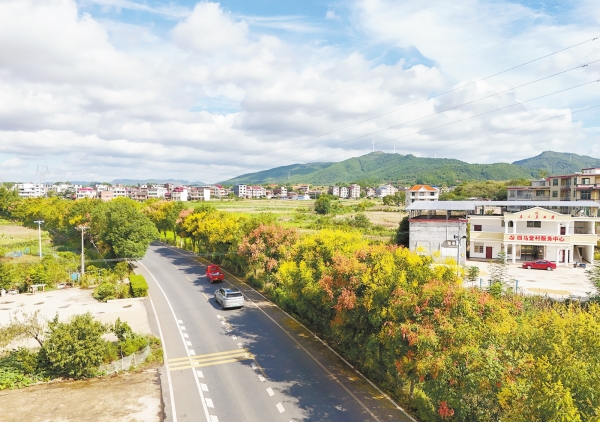 9月11日,初秋时节,省道S240祁东县黄土铺镇段,道路两侧栾树花开正盛,形成亮丽风景线。陈延上 摄(湖南图片库)