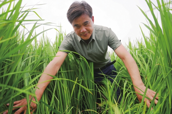 赤脚下田,柏连阳用手摸向水稻茎秆。他叮嘱身旁的农户:“水稻已孕穗,就像妇女‘怀孕’一样,这个时间的田间管理尤为重要,关系着后期丰产丰收。”