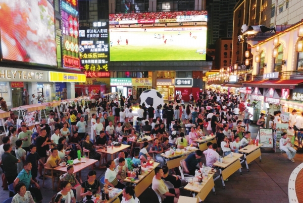9月13日,市民在衡阳市雁峰区市府路观看比赛直播。