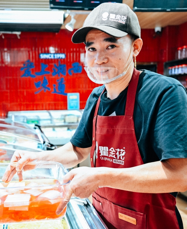“金花泡菜”从最初一个20多平方米的小铺面,发展到现在全国有400多家连锁店。这些年,我们被评为“特色品牌小吃店”“舌尖上的餐厅”,还赢得了“怀化市消费者信得过品牌”的称号。