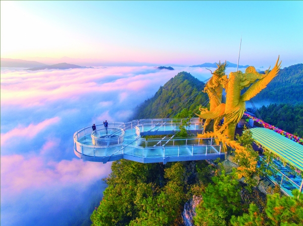 以湖南雪峰山公司为龙头,带动周边高山台地区域,共同开发森林康养、避暑等旅游项目,依次打造了穿岩山景区、山背花瑶梯田景区、阳雀坡古村落、雁鹅界古村落等,建成了龙凤玻璃观景台、高山无边际泳池等网红景点,成功将昔日偏僻的“山区”变成人气火爆的“景区”。