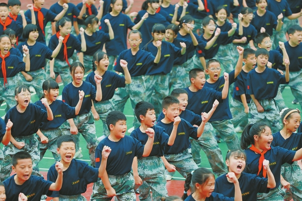 9月19日,怀化市鹤城区㵲水小学,学生在打军体拳。9月20日是我国第25个全民国防教育日,我省各地开展形式多样的主题活动,增强全民国防观念。