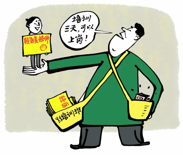 “3天线下特训+50节线上拓展课”“快速上手各类皮肤注射项目,零基础掌握核心技术”“结业即可独立接诊,月入五六万元不在话下”……《法治日报》记者近日调查发现,在搜索引擎或社交平台上搜索“医美 学习”等关键词,就会跳出五花八门的医疗美容类培训机构。其中不少此类机构承诺,只需短短几天,毫无医学学习经历的“小白”也能掌握轻医美技术,甚至可以成为独立为客户做医美项目的“高级轻医美科技抗衰管理师”或“高级医美咨询师”。面对这一乱象,相关部门当加强监管。